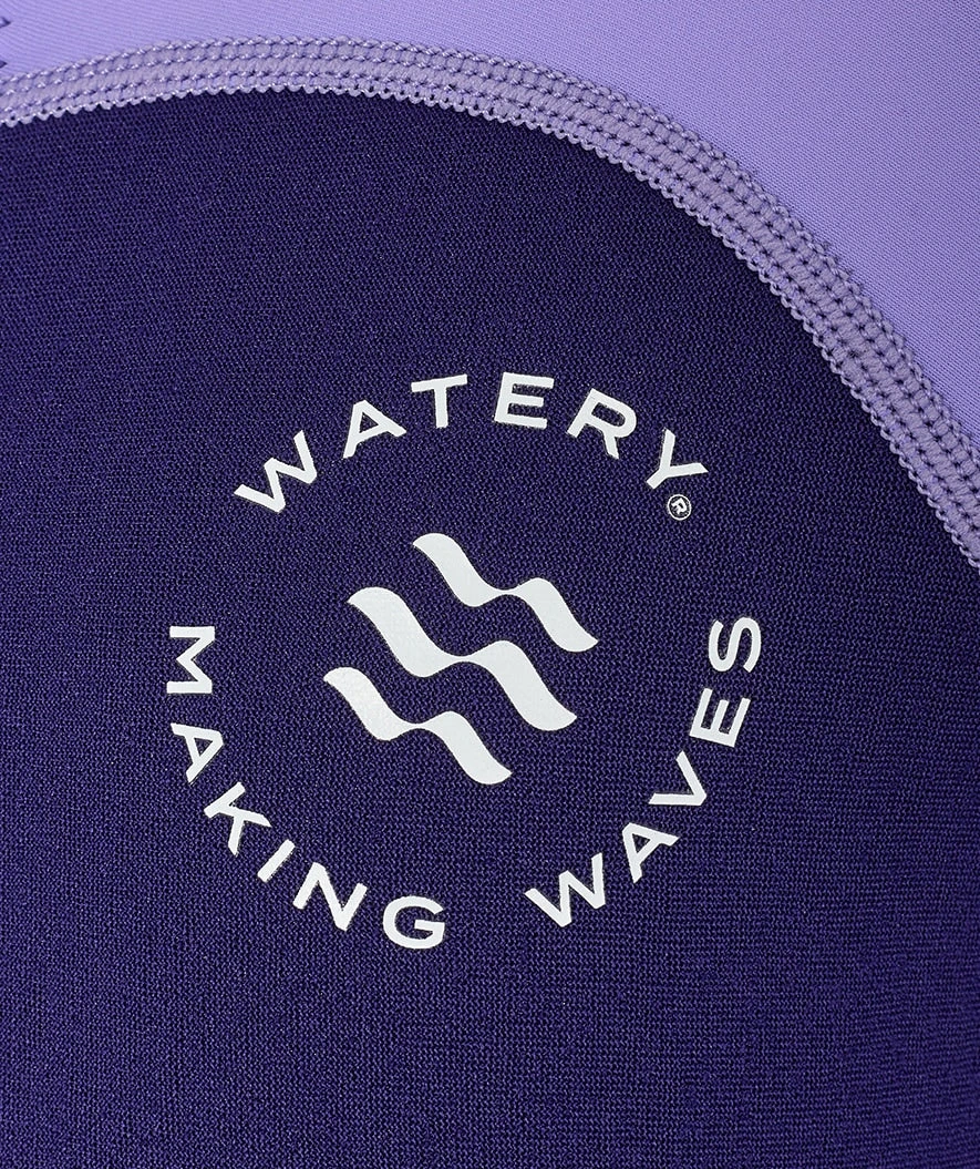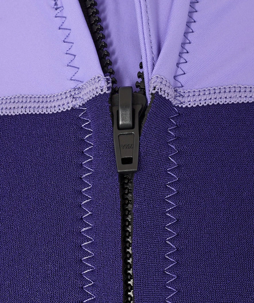 Utover det stilrene nordiske designet, så er kombinasjonen av de to materialene neoprene og Polyamid Lycra, det som får Calypso til å skille seg ut. De lyselilla armene og toppen er laget i det lette og fleksible Lycra, som får selv de mest livlige barn til å føle seg helt frie og samtidig beskyttet mot solens UVA og UVB stråler. Beina og kroppen i mørkelilla er imidlertid laget i 2mm neoprene, som både gir en høy grad av oppdrift og holder kroppen varm.