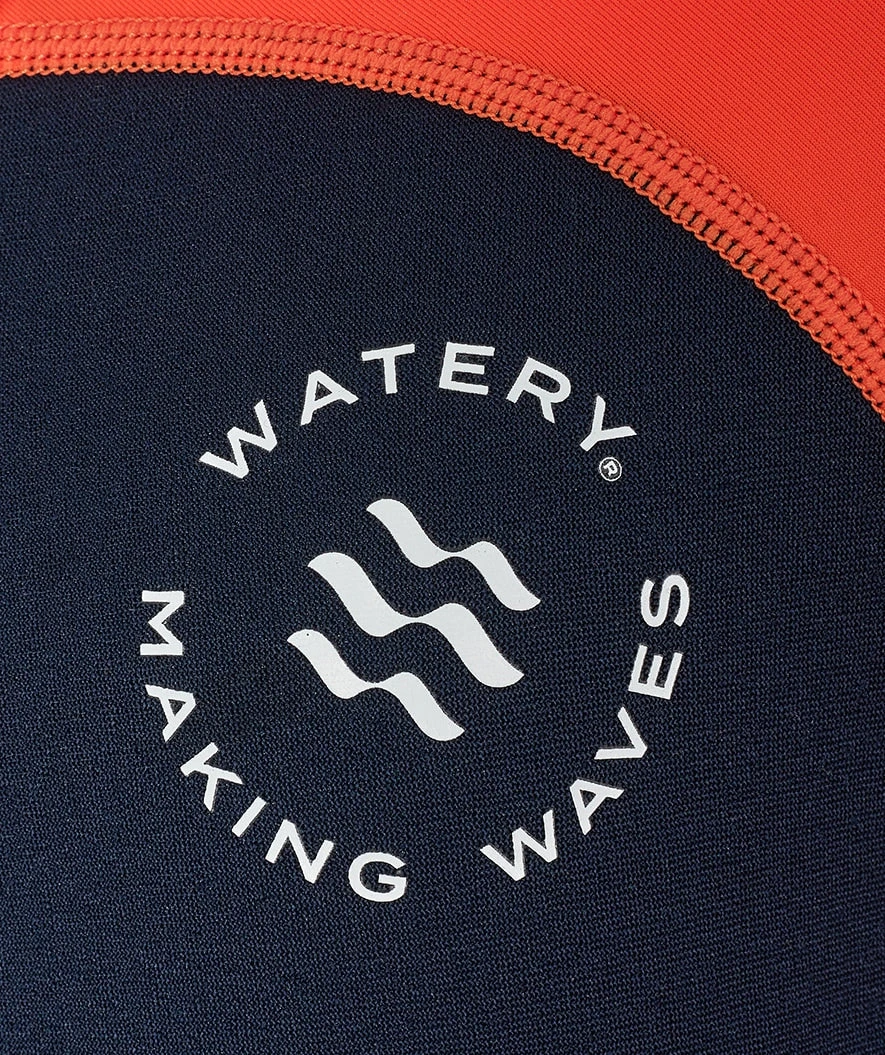 - Watery logo foran på brystet og øverst på ryggen