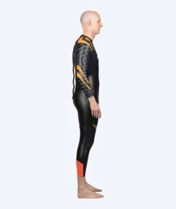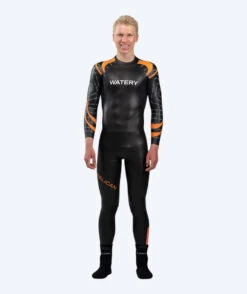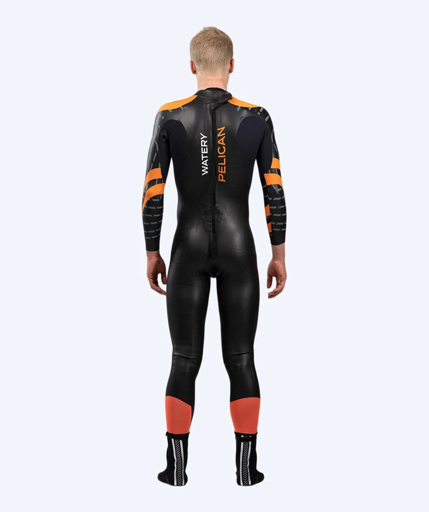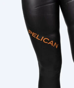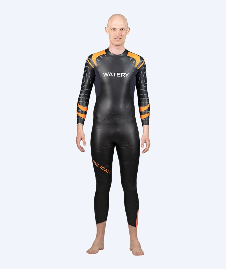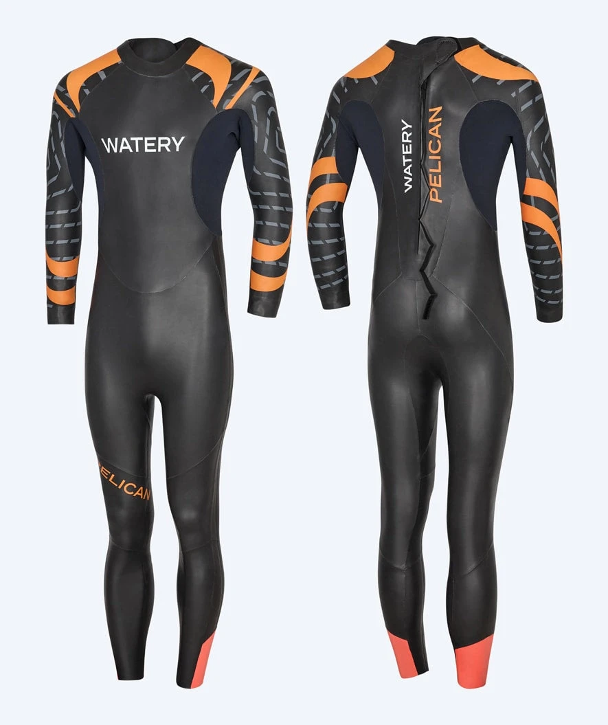Pelican Wetsuiten til menn har med det samme blitt vår klare bestselger til nybegynnere og lett øvede blant åpent vann svømmere – her i vår stilrene herremodell med en sort kropp og oransje skuldre og armer for høy synlighet i vannet. Dens store popularitet kommer av flere unike funksjoner, som ikke tidligere er sett til denne lave prisen, dette inkluderer blant annet; flex-compound i skuldrene for maksimal fleksibilitet og effekt i armtakene, en spesiell ulikhet i neoprene-tykkelsene, som løfter underkroppen helt opp i vannoverflaten, utstyrt med speed-cuffs på innsiden av håndleddet, smooth-skin overflatebehandling for en glatt overflate, som gir mindre vannmotstand og ikke minst fremstilt av premium Jako neoprene, som er utrolig fleksibelt og holdbart overfor slitasje og negler.