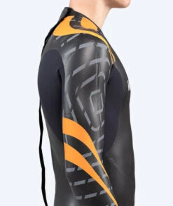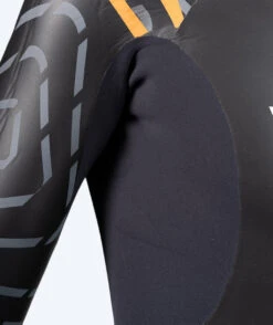 I en kombinasjon av tynnere 2,5 mm neoprene på skuldrene, overarmene og ryggen, samt et spesielt strekkbart Jersey-materiale i armhulene får du den nødvendige fleksibiliteten til å svømme både crawl, bryst og butterfly uten å føle deg bremset av våtdrakten.