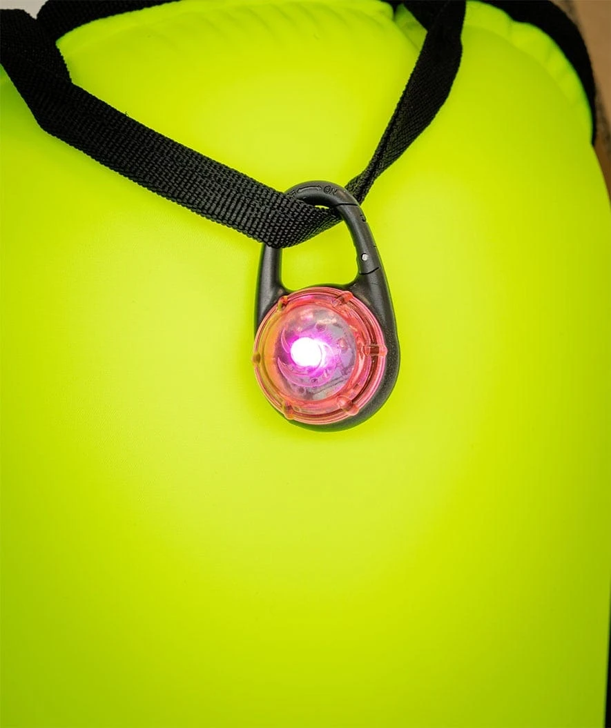 Derfor er denne Open Water Safety Light et opplagt tilbehør og til tider en nødvendighet for å sikre ekstra synlighet – spesielt når solen er borte. Lyset kan enkelt henges på stoppen på svømmebagen din eller puttes inn i selve bagen. Med markedets sterkeste lys vil du dermed være synlig i all slags vær, helt opp til 5 km unna.